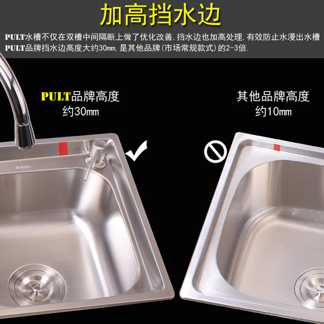 Pult厨房304不锈钢水槽双槽一体成型洗菜盆加厚洗碗槽台上盆水斗家用洗手盆报价 参数 图片 视频 怎么样 问答 苏宁易购